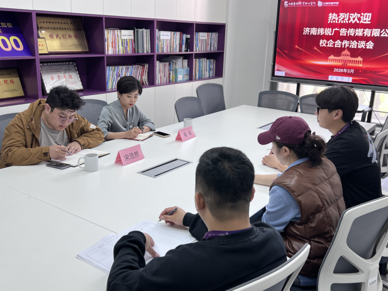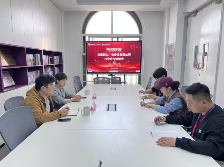 为深化产教融合、推动校企协同育人,精准对接行业人才需求,3月30日,山东圣翰财贸职业学院云商传媒学院与济南纬锐广告传媒有限公司校企合作洽谈会在吉纯楼304会议室顺利举行。济南纬锐广告传媒有限公司人事部负责人杨丽,云商传媒学院新媒体运营教研室主任周晓瑜以及学院专职教师参会,双方围绕合作方向、人才培养、资源共享等核心议题展开深入交流,共探校企合作新模式、共绘协同发展新蓝图。