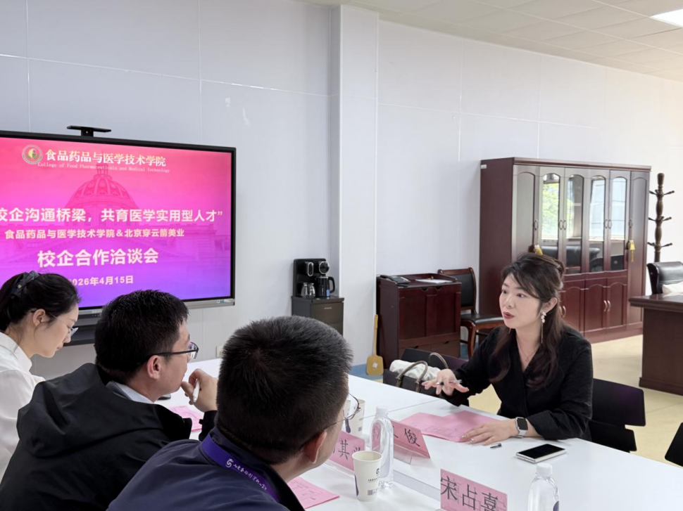 为进一步深化产教融合,推动医学美容技术专业人才培养与行业需求精准对接,近日,山东圣翰财贸职业学院食品药品与医学技术学院与北京穿云箭美业在学院实训楼举行校企合作洽谈会。北京穿云箭美业总经理文俊,学院副院长杨其义、产教协同发展中心运营主管、二级学院产教联络员宋占喜,以及相关教研室、专业负责人共同出席。