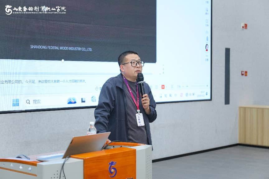 为深入贯彻国家产教融合、职教出海战略,搭建校企人才对接桥梁,4月21日,山东联邦木业有限公司走进山东圣翰财贸职业学院,举办“木业新机遇,出海共成长”专场宣讲会。作为始终重视职教出海战略、深耕国际化人才培养的院校,山东圣翰财贸职业学院积极搭建校企协同出海平台,此次邀请联邦木业入校,正是学校推进职教出海、深化产教融合的具体举措。公司经理朱孟龙带领核心团队出席,与智能工学院学子面对面交流,解读行业趋势、展示企业实力,并重点推介拉脱维亚海外项目。