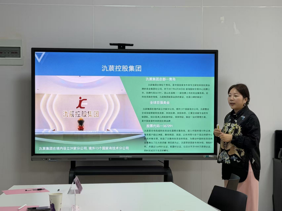 谢艾涵详细介绍了企业发展历程、业务布局、核心优势及人才战略。她表示,集团依托韩国、美国、以色列等10余个顶尖科研中心,服务客户超5000家,拥有多项专利技术,始终坚持“科技抗衰、品质服务”理念。期待与学院共建实习基地、共享优质资源,实现人才培养与企业需求精准对接,为学生搭建广阔职业发展平台。