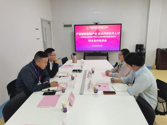 为深化产教融合,精准对接口腔医疗行业人才需求,推动口腔医学技术专业高质量发展,近日,山东圣翰财贸职业学院食品药品与医学技术学院与山东数创医疗器械有限公司校企合作洽谈会在学院实训楼顺利举行。山东数创医疗器械有限公司人事经理鞠丛丛、人事专员董迎坤,学院副院长杨其义、产教协同发展中心运营主管、二级学院产教联络员宋占喜及口腔专业负责人栾晓娜出席本次洽谈活动。