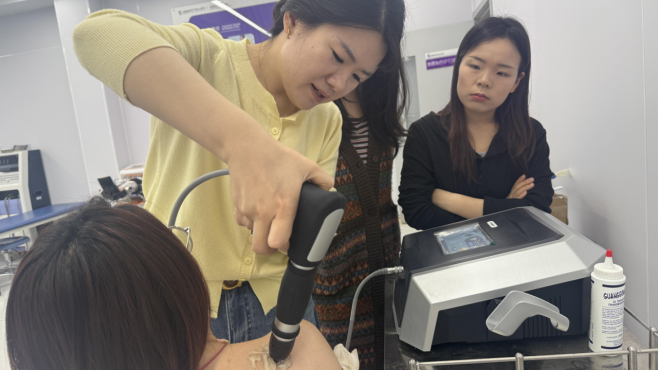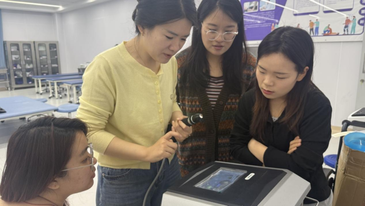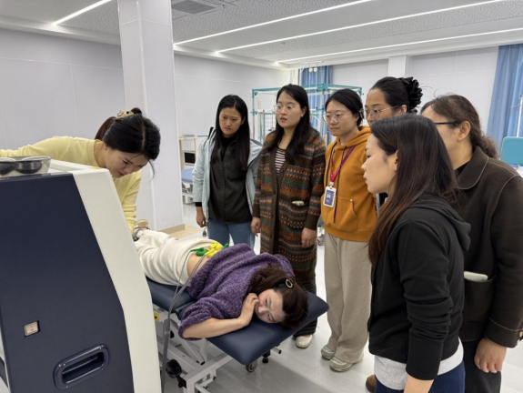 全体教师分组开展实操演练,逐一完成设备开机调试、模拟治疗、关机保养等全流程操作,相互切磋技巧、纠正操作细节。在交流研讨环节,教师们围绕设备如何融入实训课堂、优化实训项目设计、强化学生安全管理、规范设备日常维护等内容展开深入讨论,明确将设备实操常态化纳入课程体系,构建 “教—学 —练”一体化教学模式,切实提升学生岗位适配度。