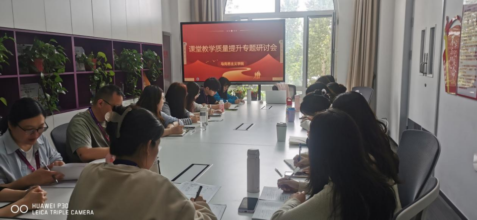为深入贯彻落实立德树人根本任务,扎实推进课堂教学质量提升工作,强化优秀教师示范引领作用,促进教师教学经验交流与专业能力提升。2026年4月17日,马克思主义学院在办公室召开课堂教学质量提升月系列活动,马克思主义学院院长阎君梅、教研室主任宋晓燕、王颖颖及全体教师参会,会议由教研室主任王颖颖主持。