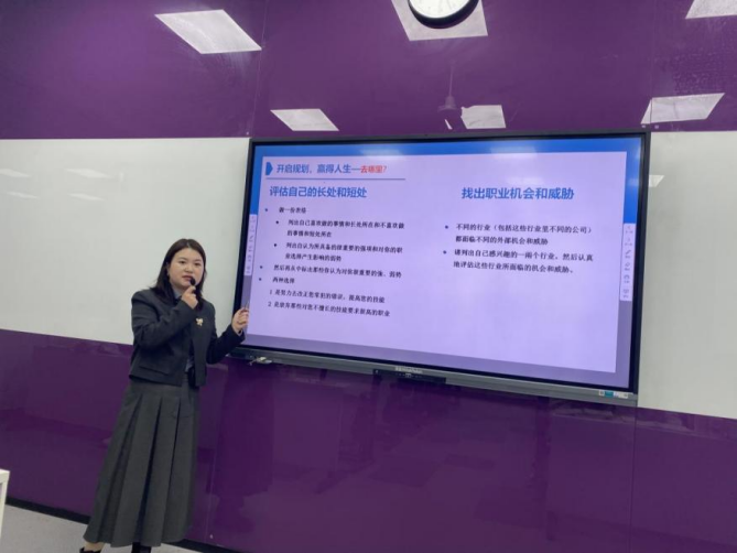 结合当下财经大数据行业用工需求及企业招聘核心标准,姜珏琪总经理紧扣毕业生即将赴岗实习的关键节点,围绕职业规划与求职面试两大核心模块展开授课。在职业规划分享环节,她结合自身企业管理及一线用人招录丰富经验,指导学生结合专业适配度与个人发展诉求,科学规划实习岗位选择及职场成长路径,合理统筹实习历练与未来就业衔接,规避从业择业常见误区,筑牢职业发展长远根基。