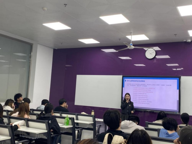 为全力促进毕业生高质量充分就业,4月28日下午,商学院立足学生求职刚需在吉纯楼116教室举办就业指导专题讲座。本次活动特邀山东佳德信集团济南分部总经理姜珏琪莅临授课,面向2024级大数据与财务管理班毕业班学生,开展题为《做好职业发展规划赢得体面人生》的实操化就业专项培训。