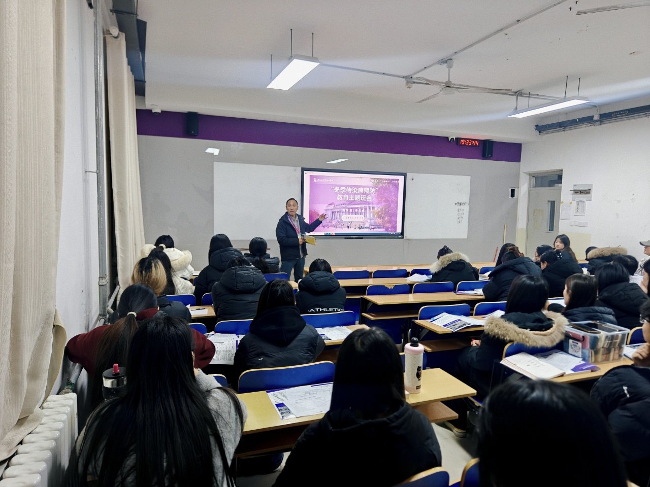 近日,商学院召开“冬季传染病预防”主题教育班会 引导学子争做健康第一责任人。冬季传染病防控,每个人都是第一道防线。咏望楼教室内气氛庄重而热烈,商学院辅导员李占贞老师以班级学生真实案例开篇,为班级学生带来了一场干货满满的“冬季传染病预防”主题教育班会,引导学子树立主动健康意识,争做自身健康的第一责任人。