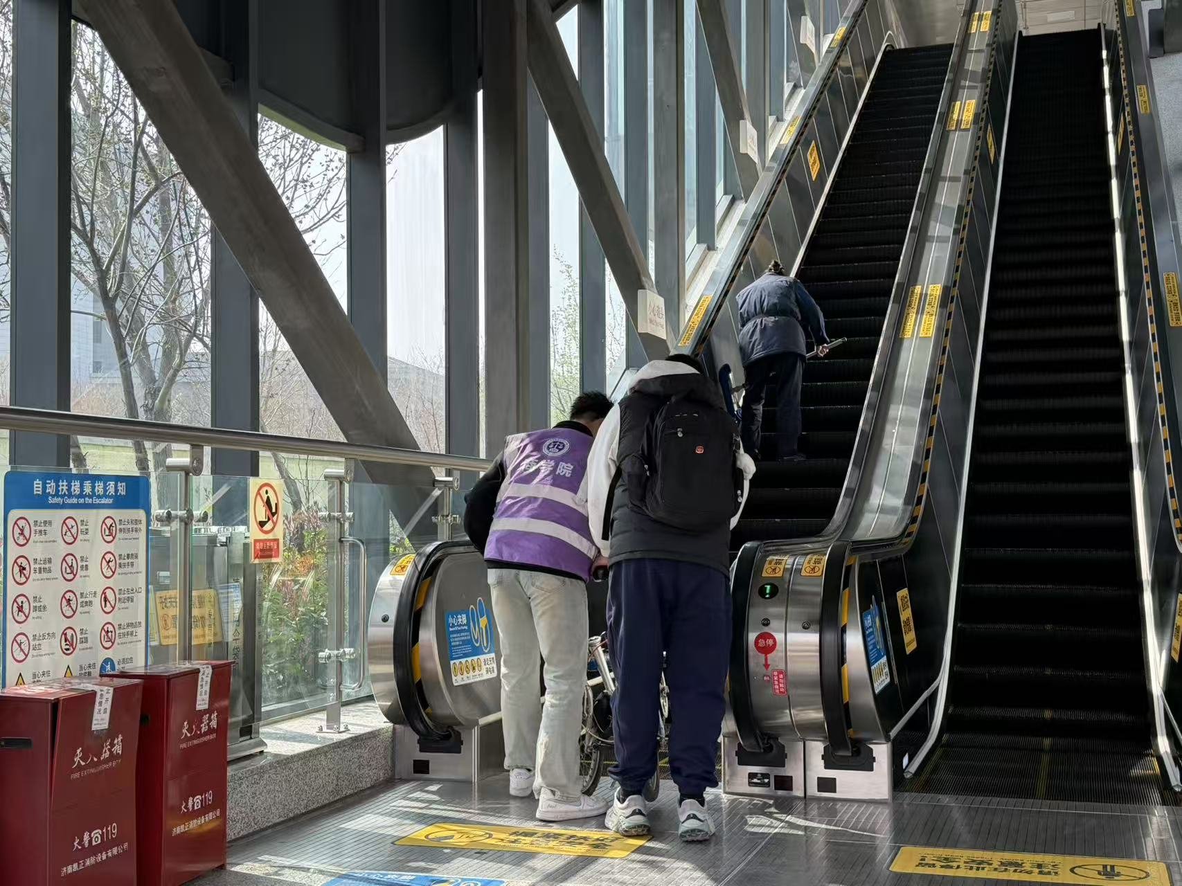活动期间,志愿者们身着统一学院马甲,准时抵达济南地铁紫薇路站点和王府庄站点,在工作人员引导下迅速进入工作状态。在进站口,志愿者们主动协助乘客扫码进站、引导有序排队,耐心解答乘客关于线路换乘、票价查询、站点位置等问题,尤其针对老年乘客、携带行李的旅客,主动提供帮扶,协助搬运行李、指引方向,让出行更便捷、更温暖。在候车区,志愿者们积极维护候车秩序,提醒乘客注意安全、文明乘车,倡导排队候车、先下后上,营造文明有序的乘车环境。在出站口及换乘通道,志愿者们主动为乘客指引路线,协助使用自助售票机、充值机,帮助乘客快速完成购票、充值等操作,减少乘客等待时间,提升出行效率。