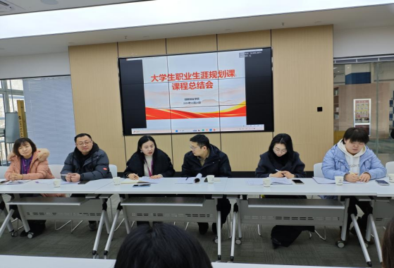 立足学校高职人才培养目标,紧扣区域产业需求,为总结和深化《大学生职业生涯规划》课程教学改革成效,全面提升课程教学质量与学生发展服务效能,12月24日,创新创业学院在创梦空间路演室召开大学生职业生涯规划课程学期总结会。教务处处长李涛,副处长张明哲、王玎,创新创业学院院长盛雅欣、课程负责人苏艳艳及本课程全体专兼职教师参加会议。