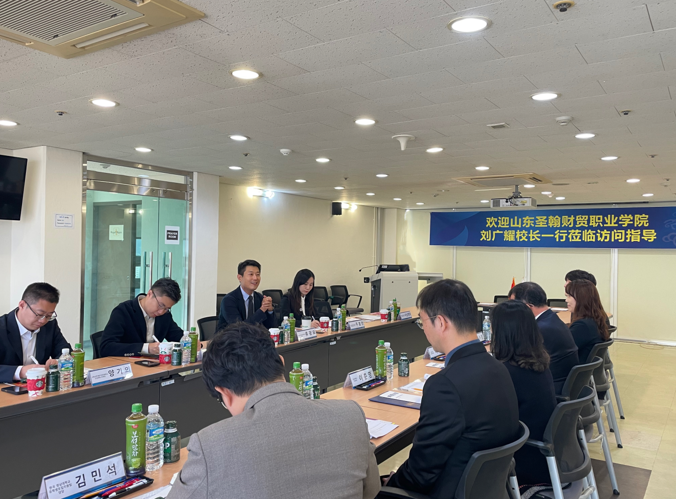 访问伊始,岭南大学副校长李敬秀、国际处处长李春永等校方代表对我校代表团的到访表示了热烈欢迎。在庄严而友好的氛围中,两校校长分别致辞。刘广耀校长对岭南大学的热情接待表示感谢,并阐述了山东圣翰财贸职业学院国际化发展的战略愿景,期待与岭南大学建立深度合作关系。李敬秀副校长充分肯定了我校的发展理念,表达了携手共育国际化人才的坚定意愿。