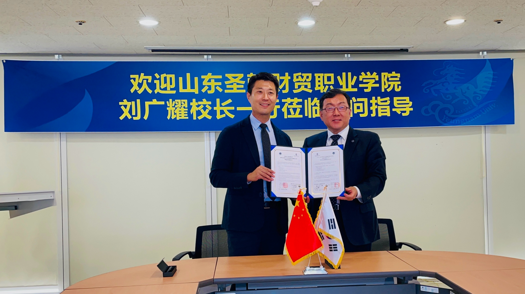 为积极践行教育国际化战略,深化与全球高校的务实合作,近日,山东圣翰财贸职业学院校长刘广耀率团应邀对韩国岭南大学进行了富有成效的友好访问。此次访问标志着两校战略合作进入了提质增速的新阶段,为未来在师生交流、联合培养及学术研究等领域的深度协作奠定了坚实基础。