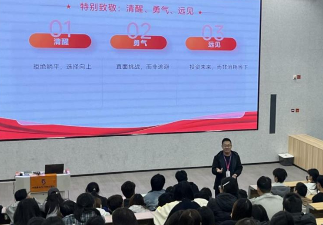 在“如何赢”的实践指导环节,杨其义介绍了学院的“升本护航计划”与“升本加油站”双重支持体系。学院将提供专属自习室、备考资料库等资源,实行双辅导员帮扶机制,并定期开展政策解读与心理辅导讲座。杨其义还列出了具体行动清单,强调GPA作为“硬通货”的重要性,建议同学们积极考取英语四级、计算机二级等证书,鼓励大家参与“21天打卡挑战”,提升学习效率,实现从“被动学习”到“主动成长”的转变。