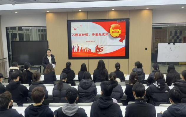 冬日和暖,校园清朗。为深入贯彻落实共青团思想引领工作的相关要求,近日,健康学院在创梦空间路演室成功举办“入团启新程,青春赴未来——团员成长赋能培训”活动。现场气氛庄重而热烈,学院团总支书记张红伟宣布培训正式启动,一场以“青春赋能、信念铸魂”为核心的团员培育活动拉开序幕。