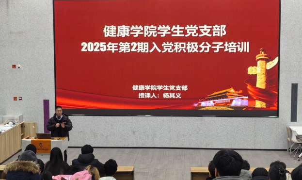 为严把党员发展“入口关”,切实提高入党积极分子的思想政治素养与理论水平,引导青年学生坚定理想信念、自觉向党组织靠拢,健康学院学生党支部根据《中国共产党章程》及上级党委相关要求,于近期在吉纯楼第四报告厅顺利举办2025年第2期入党积极分子教育培训。