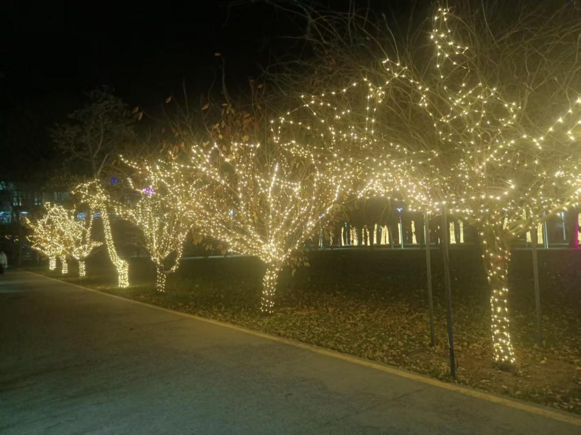 近日,我校在主通行路沿线精心布置了暖黄色小彩灯,以“光影织梦”为主题,营造温馨而富有诗意的夜间氛围。灯光沿着树梢蜿蜒而上,仿佛为冬日的枯枝披上金纱,微风拂过,光点轻轻摇曳,宛如低语着夜晚的温柔。落叶铺就的小径旁,光晕洒落,映照出学子们归途的身影,也照亮了求知路上的每一步。