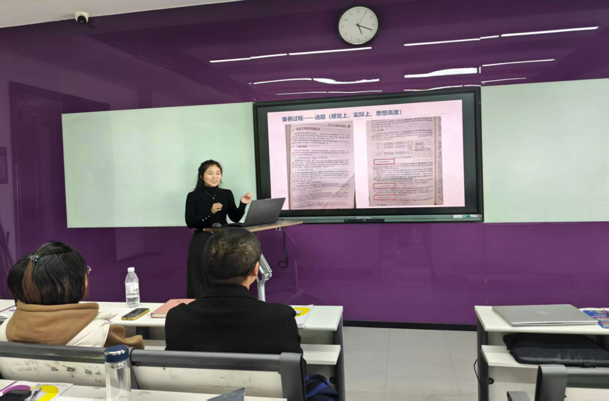 分享会最后,王老师以“演与设计”“节奏与实效”“板书与支架”为关键词,层层剖析教学展示背后的逻辑。她认为,比赛中的“表演”本质是教学艺术的凝练表达,是教学理念与课堂实践的高度统一;而板书与课件则应成为学生课后复习的“视觉支架”,帮助他们在离开课堂后仍能重构知识脉络。