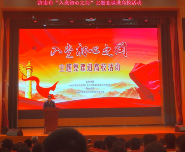 深入学习贯彻习近平新时代中国特色社会主义思想,全面落实《全国党员教育培训工作规划(2024—2028年)》要求,10月30日,济南市优秀党课进高校活动在济南工程职业技术学院双山校区举行。山东圣翰财贸职业学院云商传媒学院教师党员代表参加了此次学习活动,与全市高校师生党员共同接受思想淬炼与精神洗礼。