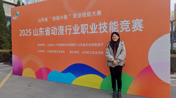 2025年11月23日,山东省“技能兴鲁”职业技能大赛——2025山东省动漫行业职业技能竞赛决赛在山东轻工职业学院落下帷幕。云商传媒学院教师李晓晶在职工教师组的激烈角逐中荣获三等奖。