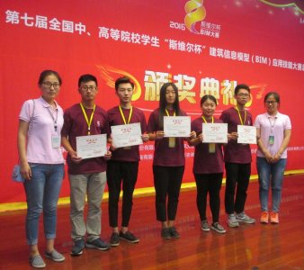 我校建筑工程学院在韩笑、张贺老师的带领下,“地表最强战队”选手张敏、高俊、马猛、赵芳蕾、陈永星五人与其他高校代表队展开了激烈的角逐,最终凭借扎实的基础知识和熟练的操作技能取得了优异的成绩。共获得一个一等奖,三个二等奖,其中《工程造价专项(含土建算量、安装算量、清单计算)》专项一等奖、《工程设计专项(含建筑、结构、机电)》专项二等奖、《绿色建筑分析专项(含节能、日照、采光、暖通负荷)》专项二等奖、全能二等奖。