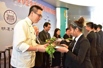 本年初,山东圣翰财贸职业学院与明道大学、北京新荣记餐饮管理有限公司达成“校校企合作协定”,实现了两岸校企资源的强强联合,为成功培养“餐饮服务与管理”领域高端人才,提供了强有力的保障。在明道大学,圣翰学子们将接受理论与实践相结合、技术与知识并重的特色教育,参加市场营销、餐饮管理概论、财务管理、消费者行为等高水平专业课程,参与各项校内实践活动、成果发表会、研讨会以及校外五星级酒店实践活动等。同时,明道大学还负责辅导学生在学习过程中取得“餐饮服务与管理”专业国际职业资格证书,切实让学生拓展专业技能、开阔专业视野,以达到培养国际化高端专业人才的目标。