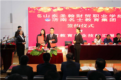 为贯彻落实党的十九大报告中提出的“培养知识型、技能型、创新型劳动者大军”要求,4月18日上午,山东圣翰财贸职业学院与济南名士教育集团签约仪式暨学前教育专业技能汇报在第一报告厅隆重举行。济南名士教育集团领导代表、学校各位校级领导及艺术学院师生参加了活动。