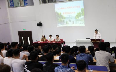 会谈结束后,坂本先生一行在学校第三报告厅为汽车工程学院、五年制高职学院和艺术学院的学生宣讲,并在会上与学校师生进行了愉快的交流。随行的山本裕美子老师还为学校赴日留学班学生们上了一堂生动的日语课,并介绍了和歌山外国语专门学校为提高教学效率而进行的一系列教学改革,以及在日本学习、生活的一些情况和注意事项,帮助同学们更好地适应在日本的学习、生活 。